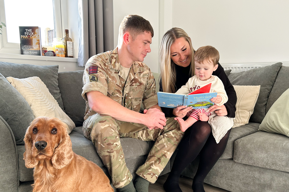 Çavuş Jack Crean, eşi Nina ve bir yaşındaki oğulları Charlie, Cambridgeshire'daki Bassingbourn Kışlası'nda yeni yenilenen evlerden birine taşındı.